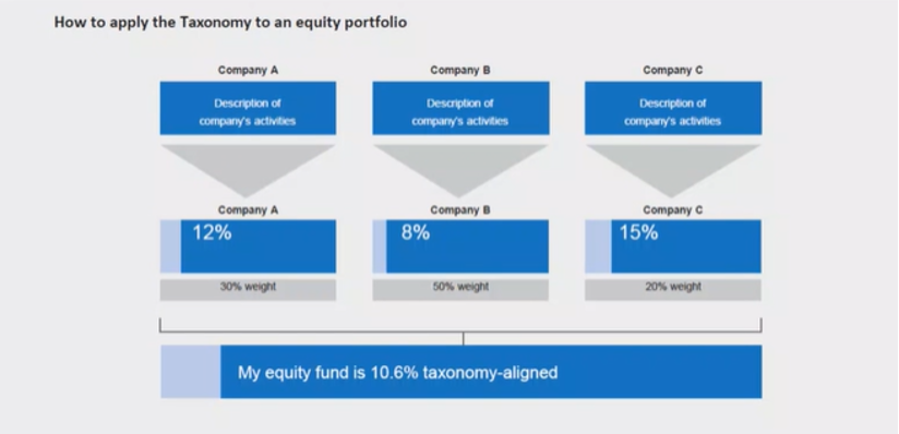 Below is an example of how the Taxonomy-aligned ratio is derived of a portfolio: