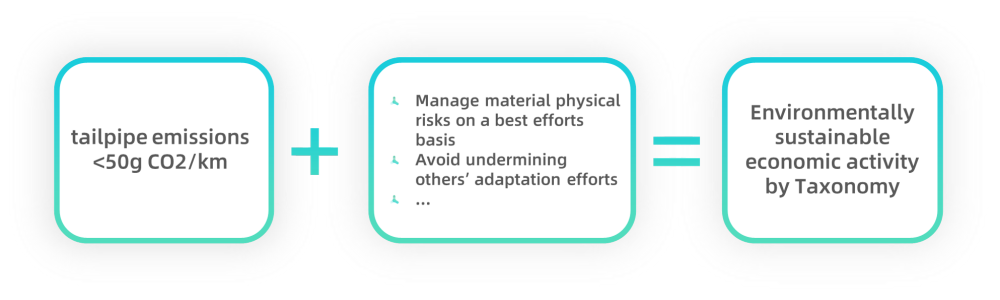 For subjects with specific Taxonomy-aligned obligations applied to them in the technical framework, a Taxonomy-aligned activity would contribute to at least one environmental objective. However, a subject when contributing to some of the objectives is required to avoid DNSH to the other objectives. For instance, one of the Taxonomy-aligned activity is that passenger cars should maintain tailpipe emissions fewer than 50 grams of carbon dioxide per kilometer, which contributes to climate change mitigation, but in doing so, it cannot do significant harm to other environmental objectives.
