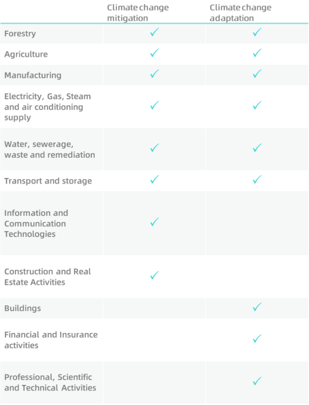 In essence, this means that taxonomy covers only a limited number of underlying sectors, at this stage. The following sectors are recognized by the technical criteria as environmentally active: