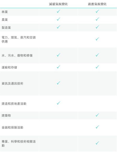 以上行業的經濟活動需要與分類法保持一致。 值得注意的是,一些對環境有重大影響的行業,如航空,並未包括在內。 預計將來還會有修正案。